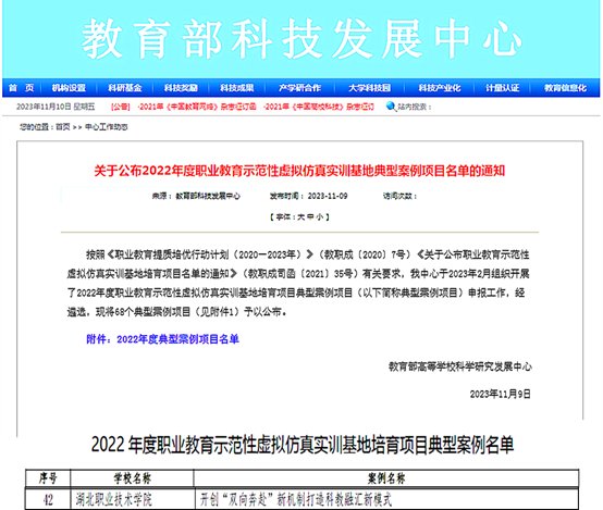 我校案例入选教育部2022年度职业教育示范性虚拟仿真实训基地培育项目典型案例